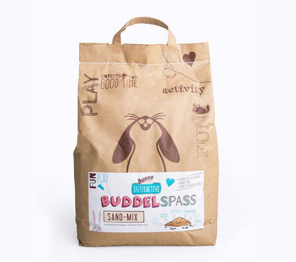 La mezcla de arena BuddelSpass de bunnyNature garantiza la mayor diversión al cavar: ¡recomendada por conejos y, por supuesto, aprobada por ellos!