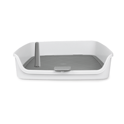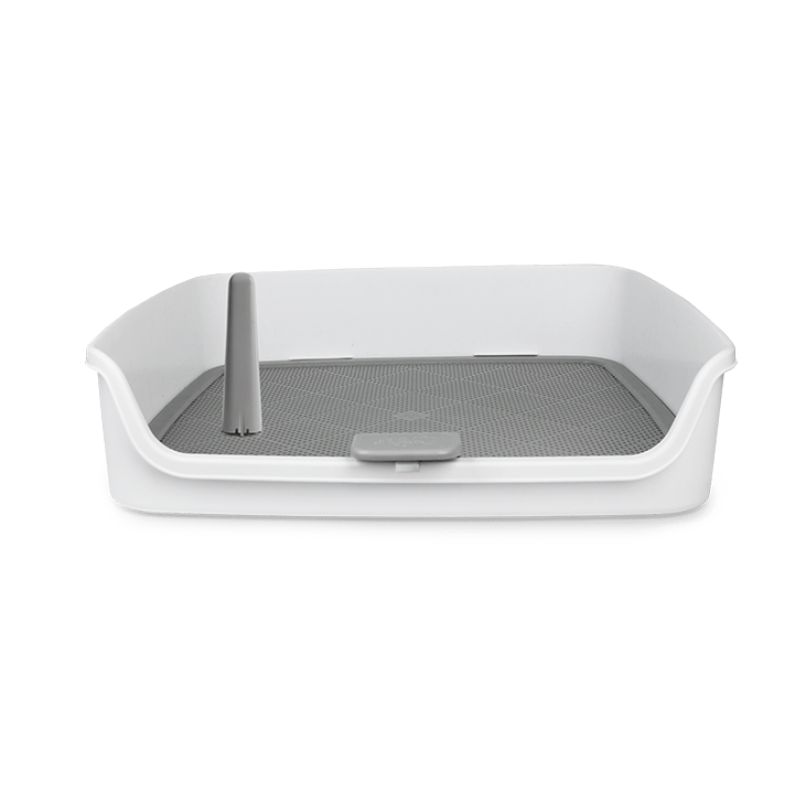 - La almohadilla para orinar se mantiene segura debajo de la rejilla, evitando que el perro juegue con ella y ensucie.