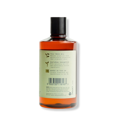 Este champú contiene aceite de árbol de té, conocido por sus eficaces propiedades calmantes y desodorantes. La sal del Mar Muerto y la vitamina E eliminan suavemente la suciedad y la grasa, mientras que la infusión de proteínas de trigo ayuda a hidratar la piel. Suave y delicado pero lujoso, este champú es duro con los olores pero no elimina los aceites naturales del pelaje y mantiene el equilibrio correcto del PH de la piel de tu perro; el resultado es un pelaje suave y sin olores.