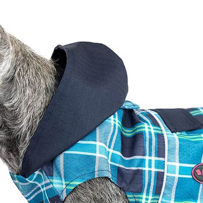 Chubasquero con capucha para perros con estampado de cuadros.