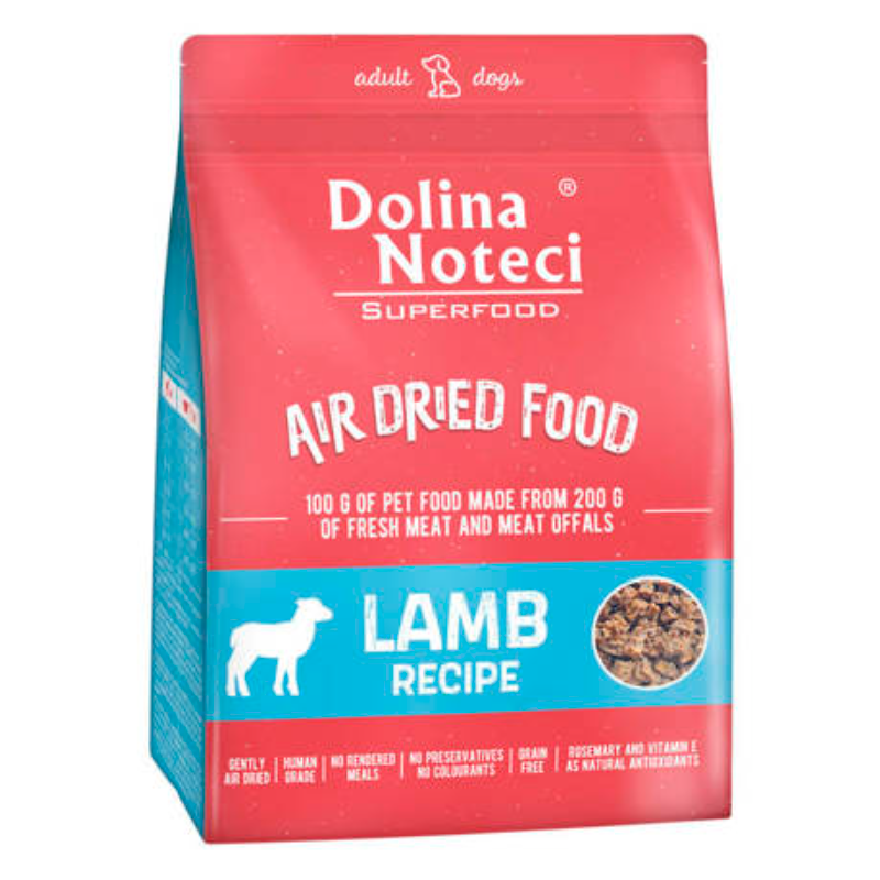 Alimento seco completo Dolina Noteci SUPERFOOD plato de cordero satisface plenamente las necesidades nutricionales de los perros adultos de todas las razas. 100 g del producto terminado se elaboran con hasta 200 g de carne fresca de cordero, ternera, pollo y cerdo.
