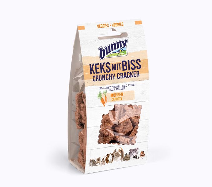 De sabor inconfundible y adorada por todos los animales: la zanahoria. Ahora combinada con una galleta crujiente. ¡Un éxito asegurado!