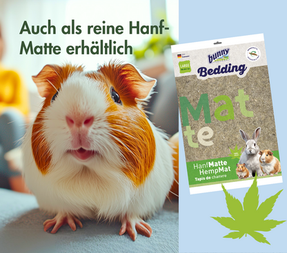Gracias a su textura extragruesa, la esterilla de cáñamo y kenaf es especialmente suave con las patas. No contiene aditivos químicos y se puede desechar de forma ecológica. Los materiales naturales ofrecen excelentes propiedades como material de nido y son ideales para animales enfermos.
