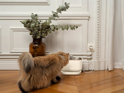 Un gato bebe, de media, un 40 % más con una fuente que con un comedero normal. Una hidratación adecuada ayuda a prevenir problemas urinarios, digestivos y renales, especialmente comunes en gatos castrados o sedentarios.