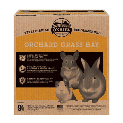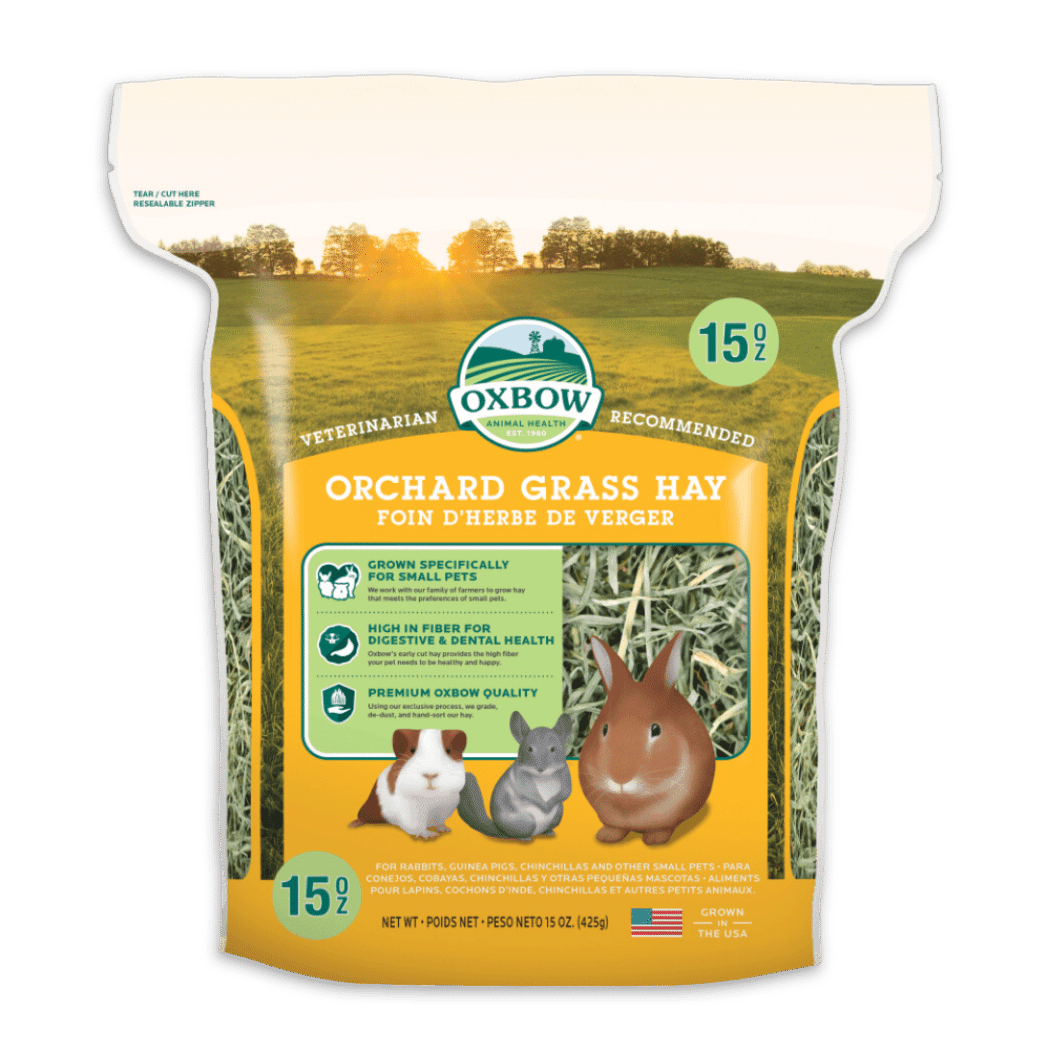 El Heno de Huerto Oxbow proporciona nutrientes altos en fibra y bajos en proteína y calcio. Es un heno suave, muy verde y de sabor dulce.