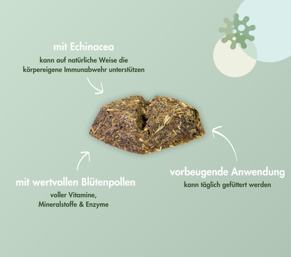 Nuestro Immune Cracker fortalece naturalmente el sistema inmunitario de sus conejos y roedores. La combinación única de hojas de equinácea y polen de flores refuerza las defensas de los animales. La equinácea estimula el sistema inmunitario y, por lo tanto, puede ayudar a combatir patógenos, mientras que el polen de flores proporciona diversos nutrientes que promueven la salud.