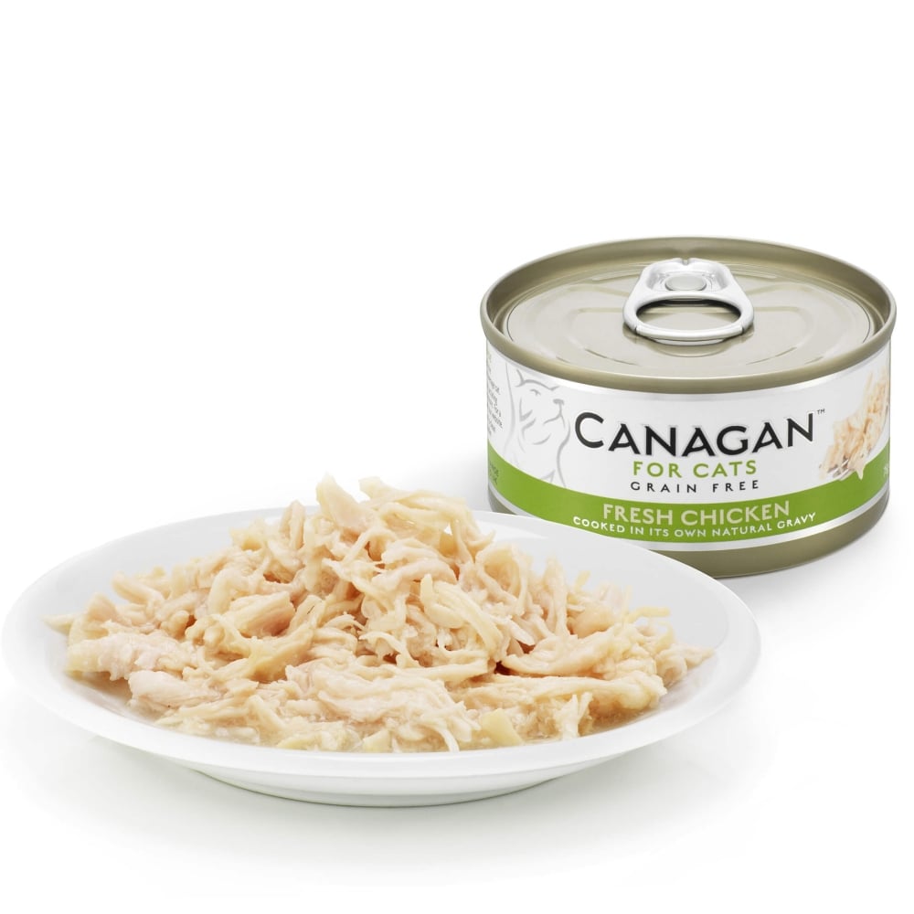 Lata de pechuga de pollo fresco sin piel desmenuzado cocinado en su propio jugo. Una receta deliciosa con proteína animal, sin cereales ni despojos, que ha sido cuidadosamente elaborada para que tu compañero felino tenga una dieta completa y equilibrada. Estas latas se pueden utilizar combinadas con el pienso, como una comida o como un pequeño premio. Estamos seguros de que tu amigo disfrutará de estas latitas.