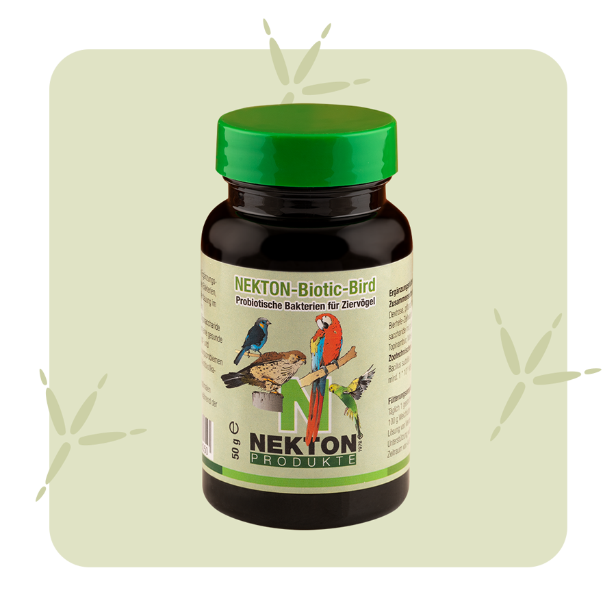 NEKTON-Biotic-Bird es un suplemento probiótico para todas las especies de aves. Las bacterias probióticas que contiene favorecen la digestión enzimática de los alimentos en el buche y el intestino de las aves. Los ingredientes prebióticos promueven una composición natural y saludable de la flora intestinal. Minerales importantes (llamados electrolitos) ayudan al organismo de las aves tras enfermedades gastrointestinales con diarrea.