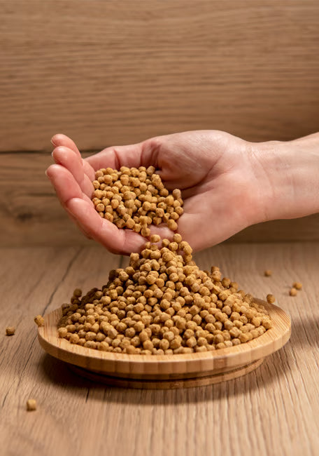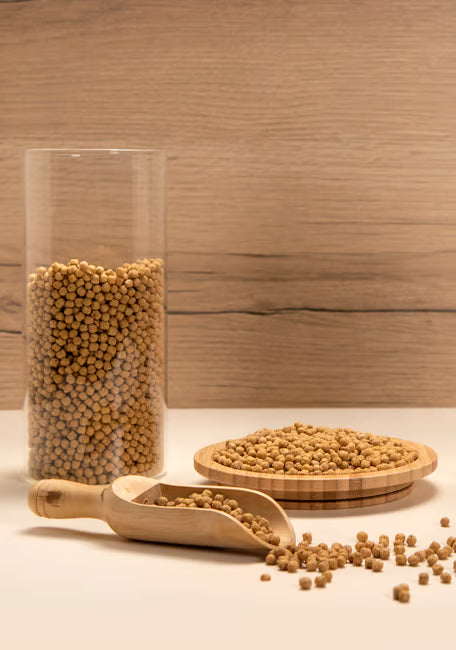 COMPOSICIÓN: Granos de cereales y sus productos derivados, semillas oleaginosas, frutos oleaginosos y sus productos derivados, aceites vegetales (girasol alto oleico, linaza refinado), huevo entero deshidratado, levadura de cerveza desecada, tubérculos, raíces y sus productos derivados, minerales y sus productos derivados, inulina (Cichorium intybus), yuca de Mojave.