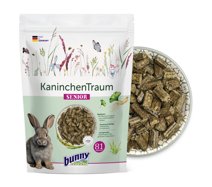 KaninchenTraum SENIOR es un alimento completo especialmente desarrollado para conejos mayores, que ofrece una mezcla armoniosa de 63 plantas y hierbas de prados sin tratar. Enriquecido con ginseng, ginkgo y espirulina, proporciona un efecto revitalizante y beneficioso. La espirulina, un superalimento para todo el organismo, es rica en valiosas proteínas, oligoelementos y antioxidantes. Su fórmula equilibrada de larga duración garantiza la dosificación correcta de todos los componentes para satisfacer las necesidades de los conejos mayores. La mezcla de 3 fibras promueve el desgaste dental y una flora intestinal saludable, mientras que la proporción óptima de fibra cruda y almidón contribuye a mantener un peso óptimo. También contiene inulina, un valioso prebiótico que estabiliza la flora intestinal natural y favorece la digestión.